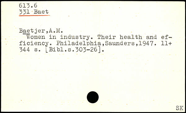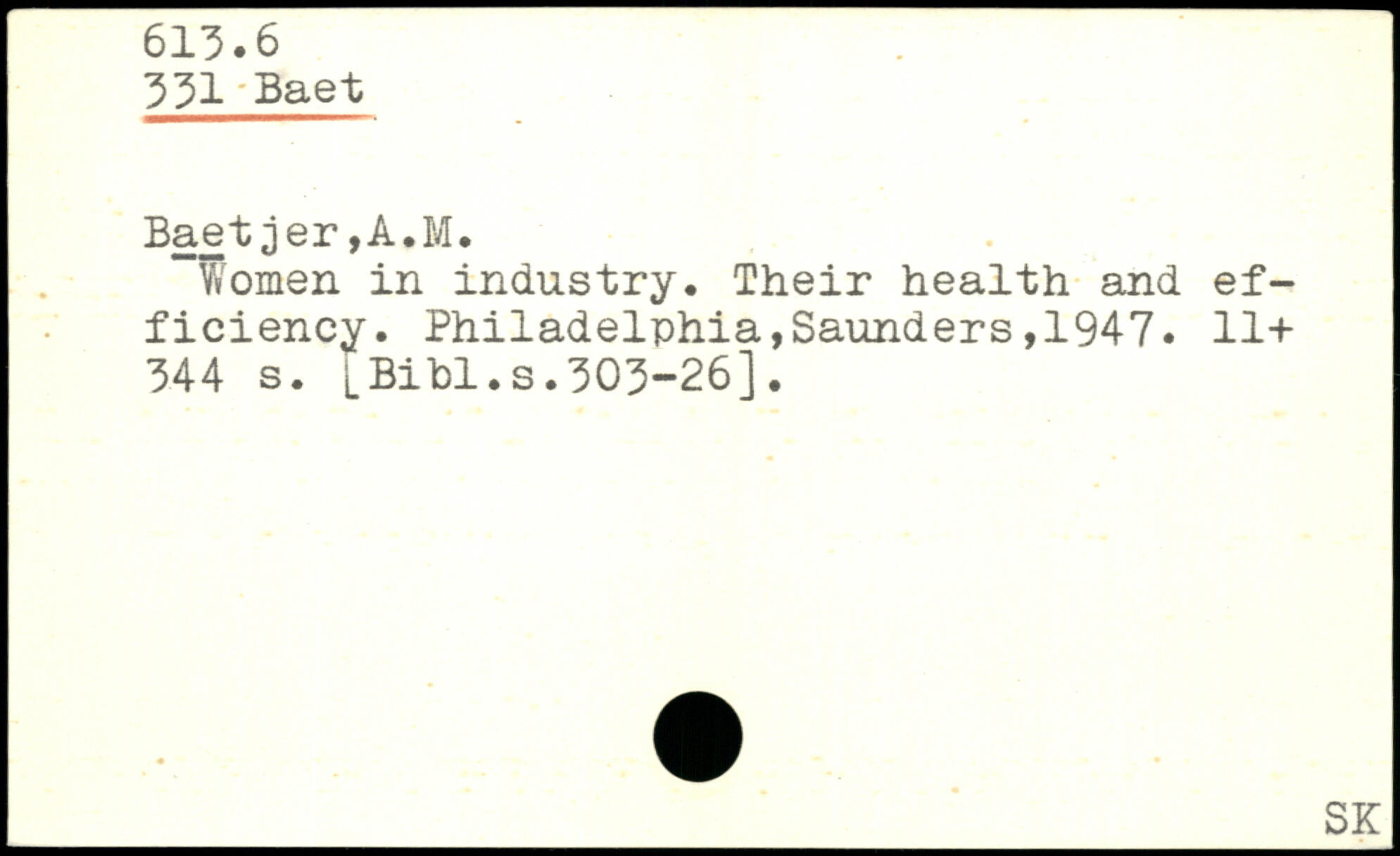 351-Baet Baetjer,A.M. ”Women in industry. Their health and efficiency.