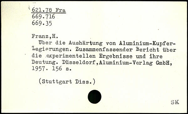 TJber die Aushärtung von Aluminium-Kupfer-Legierungen. Zusammenfassender Bericht über die experimentellen Ergebnisse und ihre j Deutung.