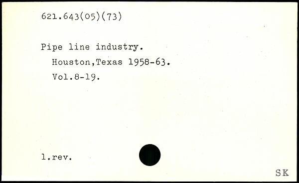 Pipe line industry. Houston,Texas 1958-63. Vol.e-19.