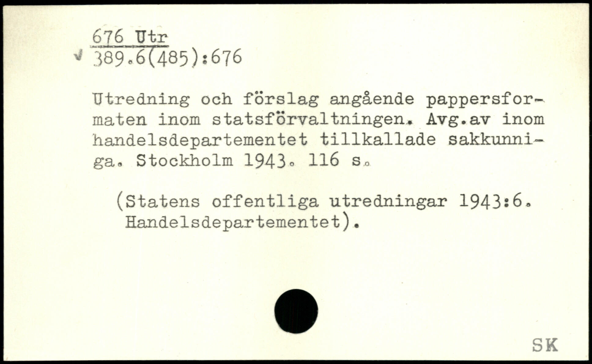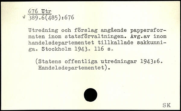 Utredning och förslag angående pappersforma t en inom statsförvaltningen, Avg.av inom handelsdepartementet tillkallade sakkunniga.