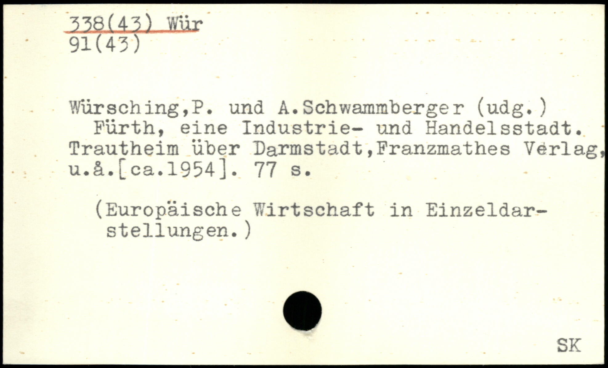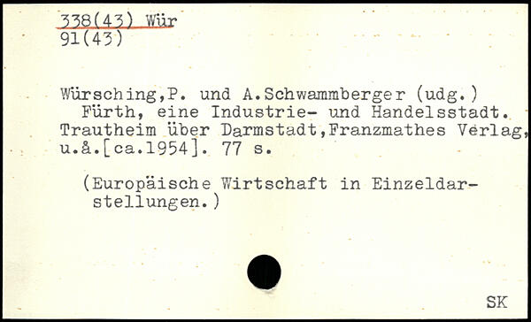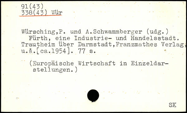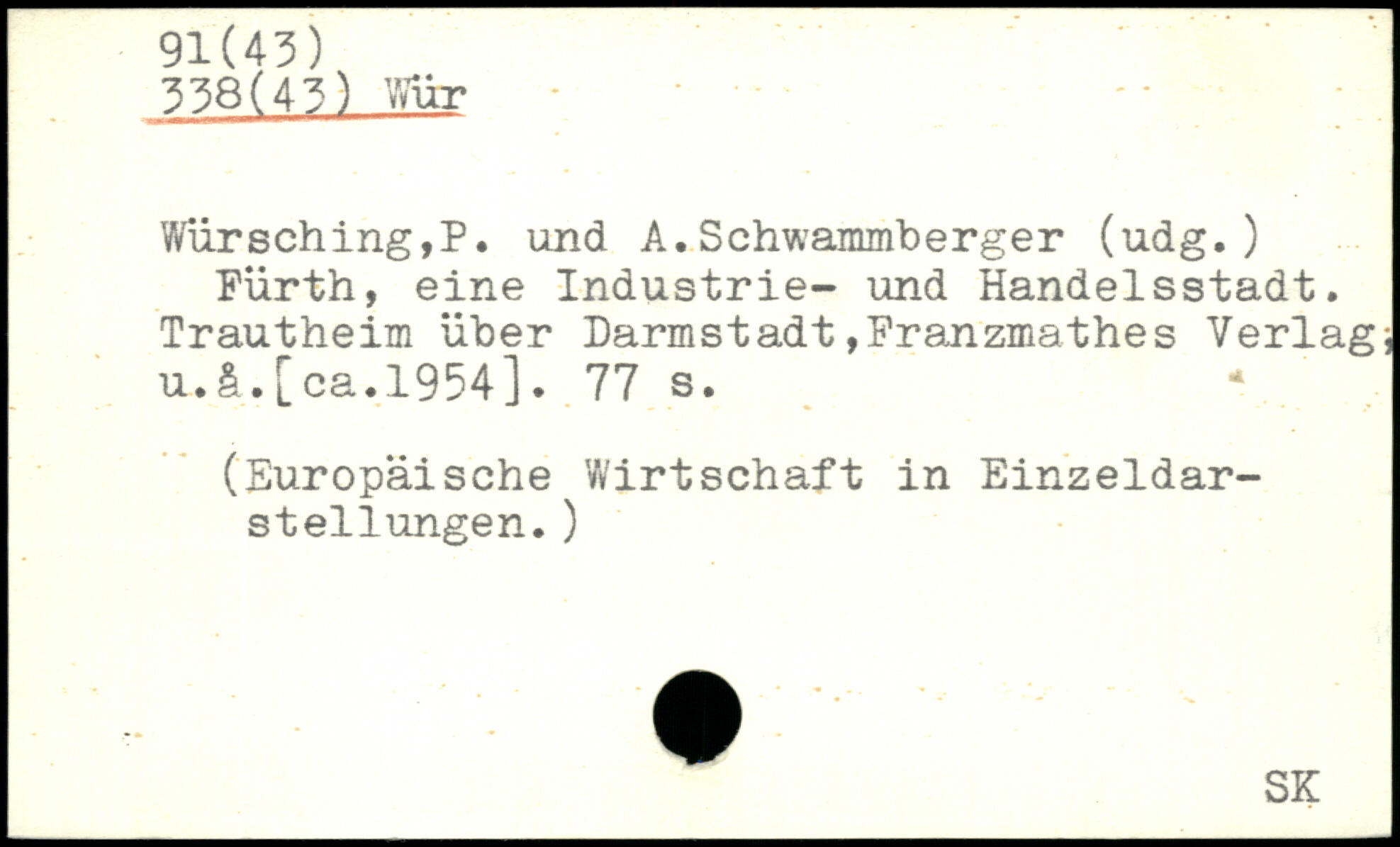 Fürth, eine Industrie- und Handelsstadt. Trautheim über Darmstadt,Franzmathes Verlag, u.å.[ca.1954].