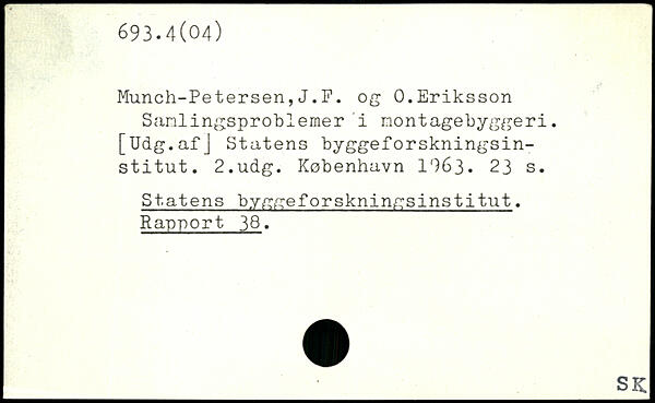 Munch-Petersen,J.F. og O.Eriksson Samlingsproblemer i montagebyggeri. [Udg.afJ Statens byggeforskningsin-stitut.