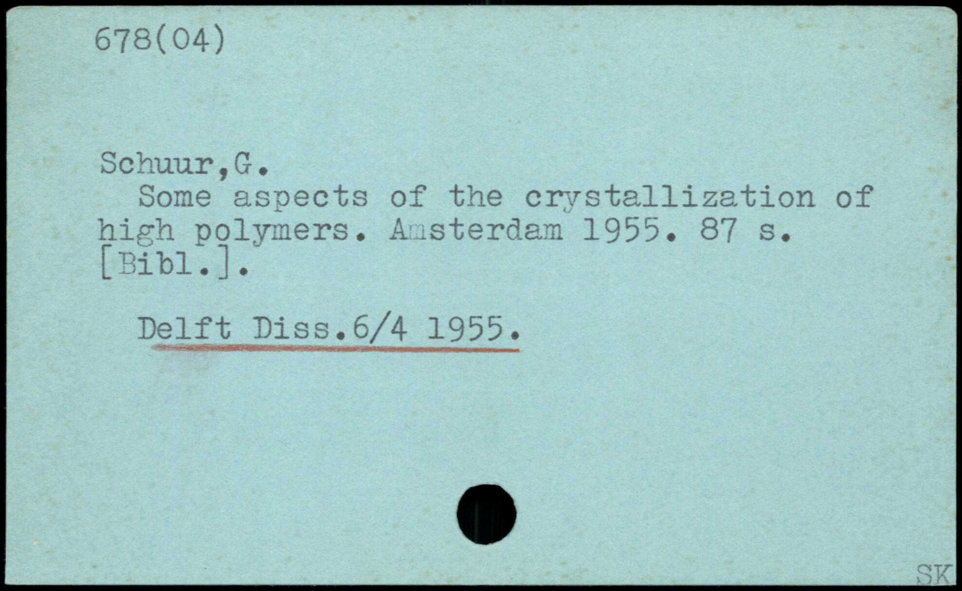 Some aspects of the crystallization of high polymers, Amsterdam 1955