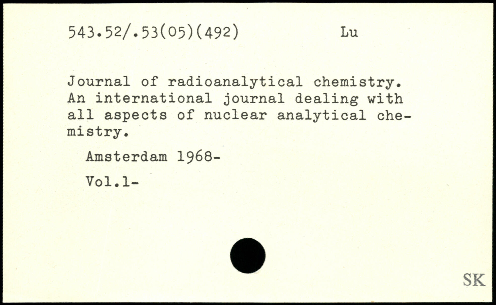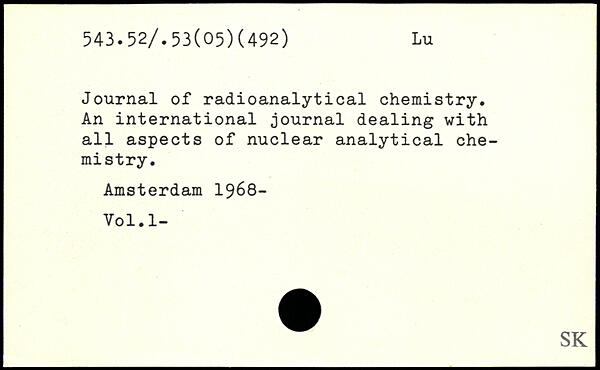Journal of radioanalytical chemistry. An international journal dealing with all aspects of nuclear analytical chemistry. Amsterdam 1968-Vol.l-
