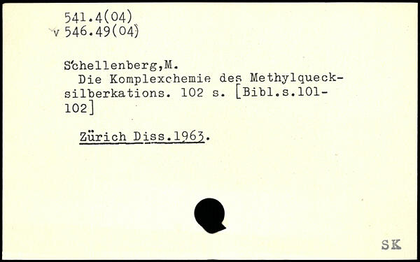 S'che lienberg, M. Die Komplexchemie des Methylquecksilberkations.