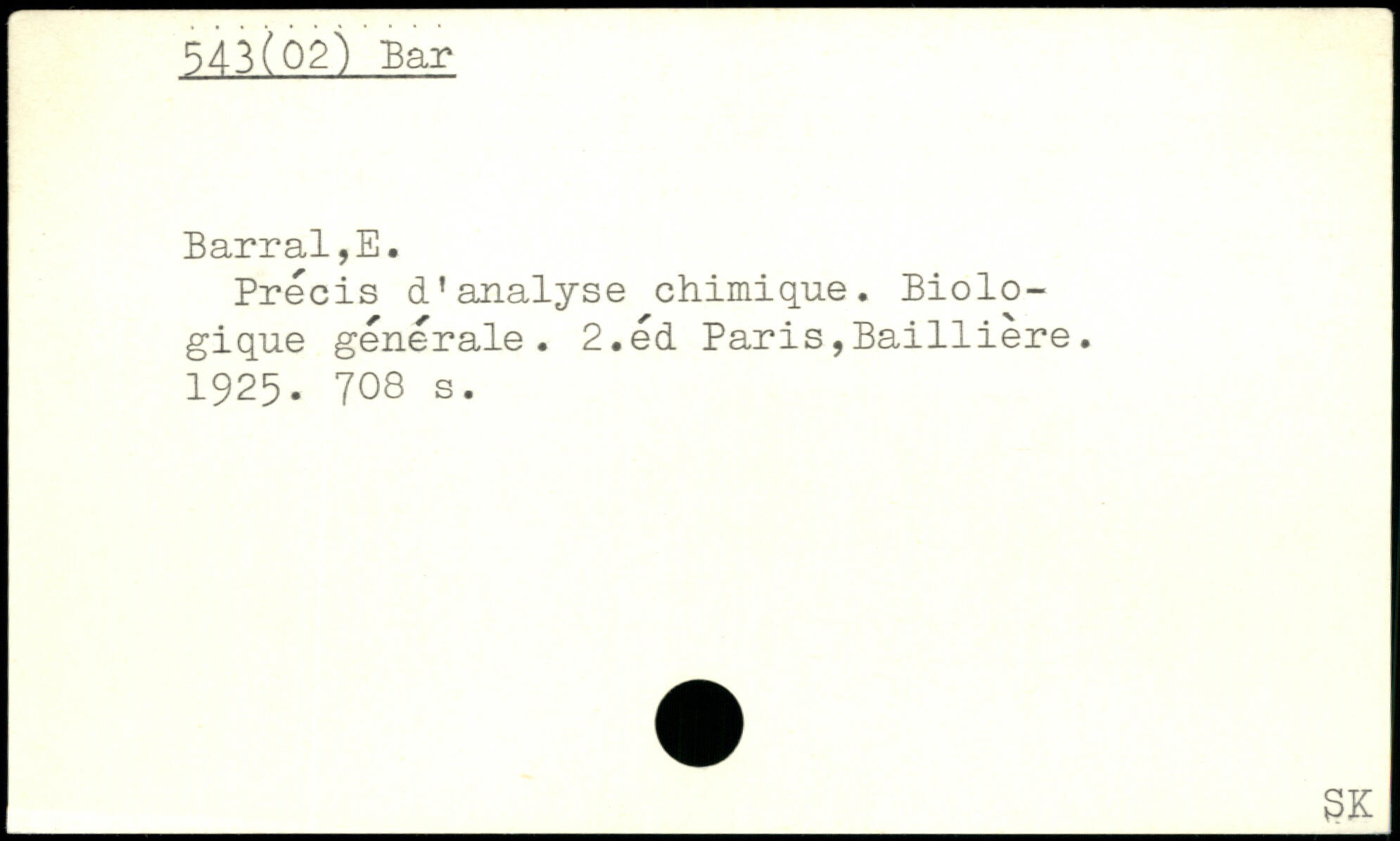Précis d'analyse chimique. Biologique générale. 2.éd Paris,Ba1111ère. 1925.