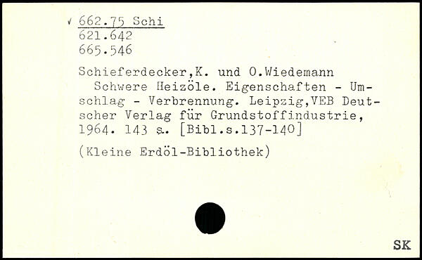Schieferdecker,K. und 0.Wiedemann Schwere Heizöle. Eigenschaften - Umschlag - Verbrennung. Leipzig,VEB Deutscher Verlag für Grundstoffindustrie, 1964. 143 a.