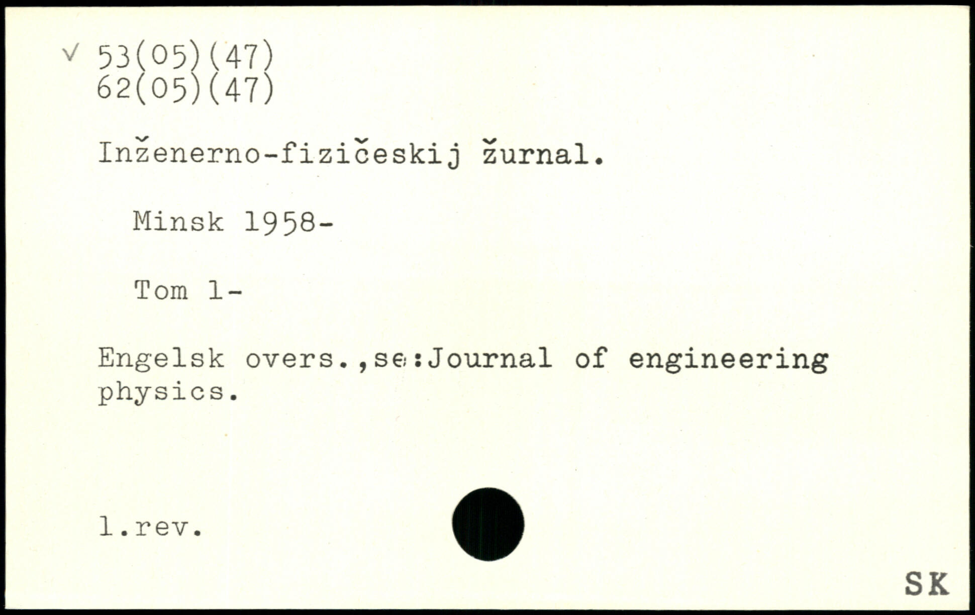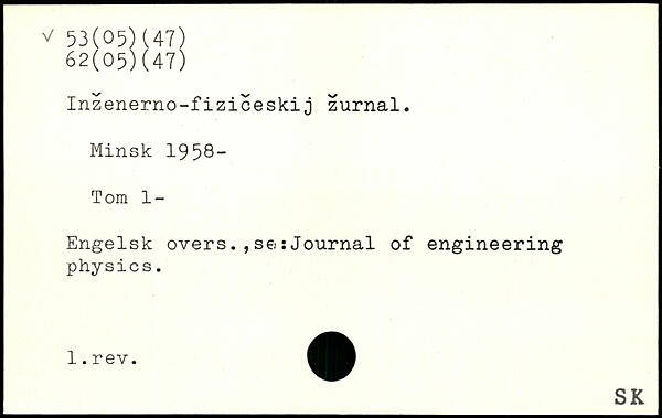 Inzenerno-fiziceskij zumal. Minsk 1958-Tom 1- Engelsk oversseïJournal of engineering physics.