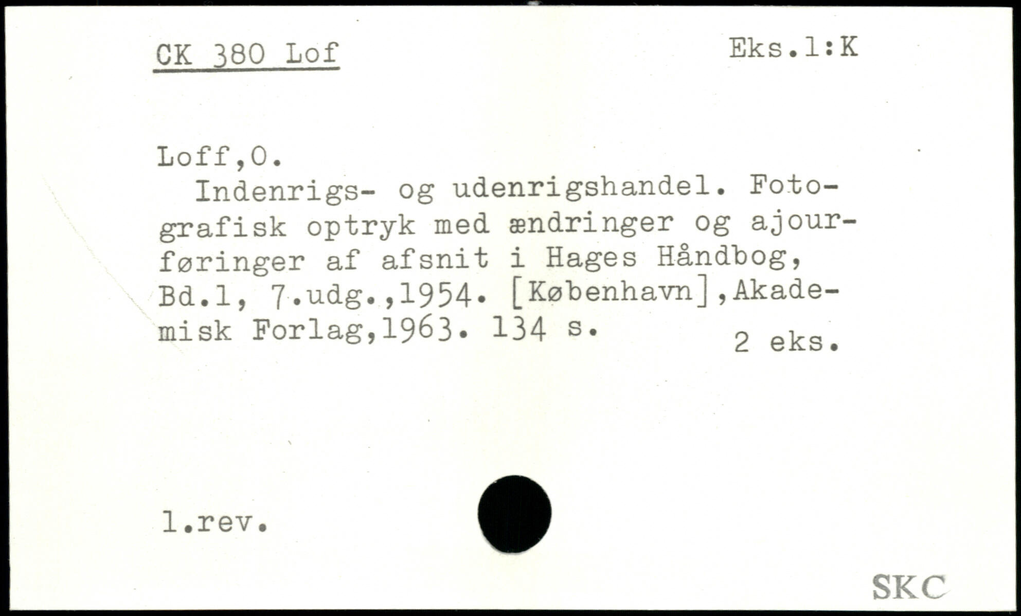 Indenrigs- og udenrigshandel. Fotografisk optryk med ændringer og ajourføringer af afsnit i Hages Håndbog, Bd.l