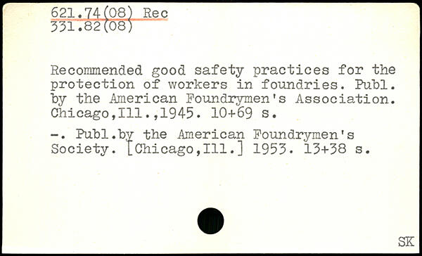 Recommended good safety practices for the protection of workers in foundries.