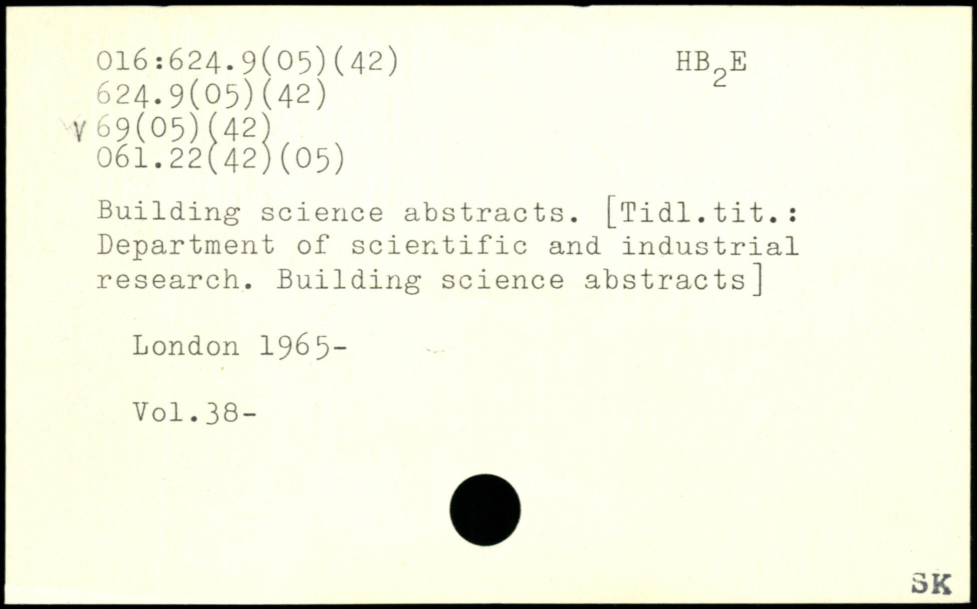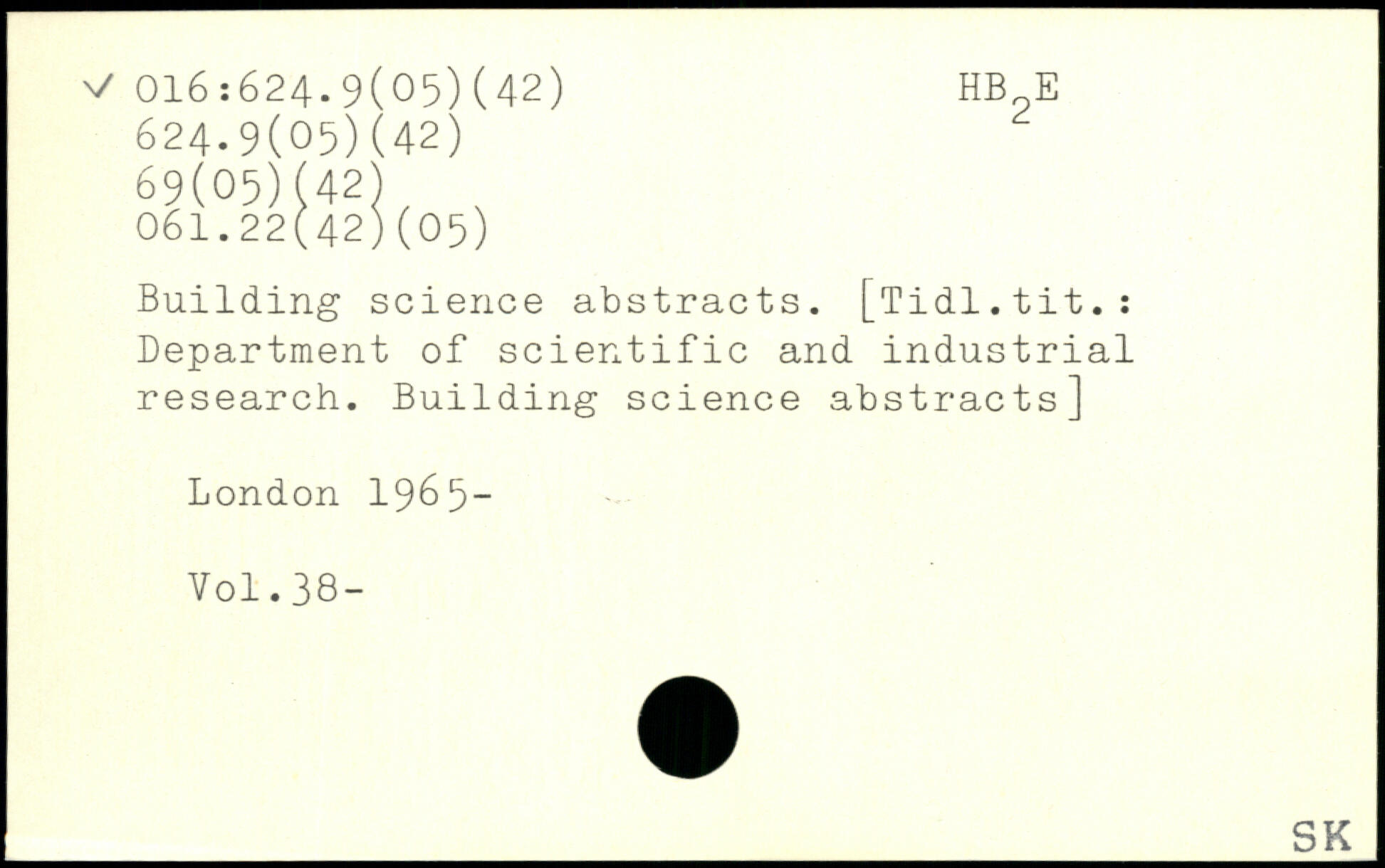 Building science abstracts. [Tidl.tit.: Department of scientific and industrial research. Building science abstracts]