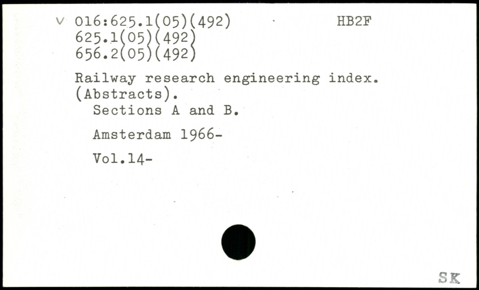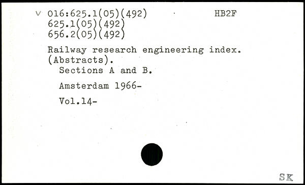 Railway research engineering index. (Abstracts). Sections A and B. Amsterdam 1966-