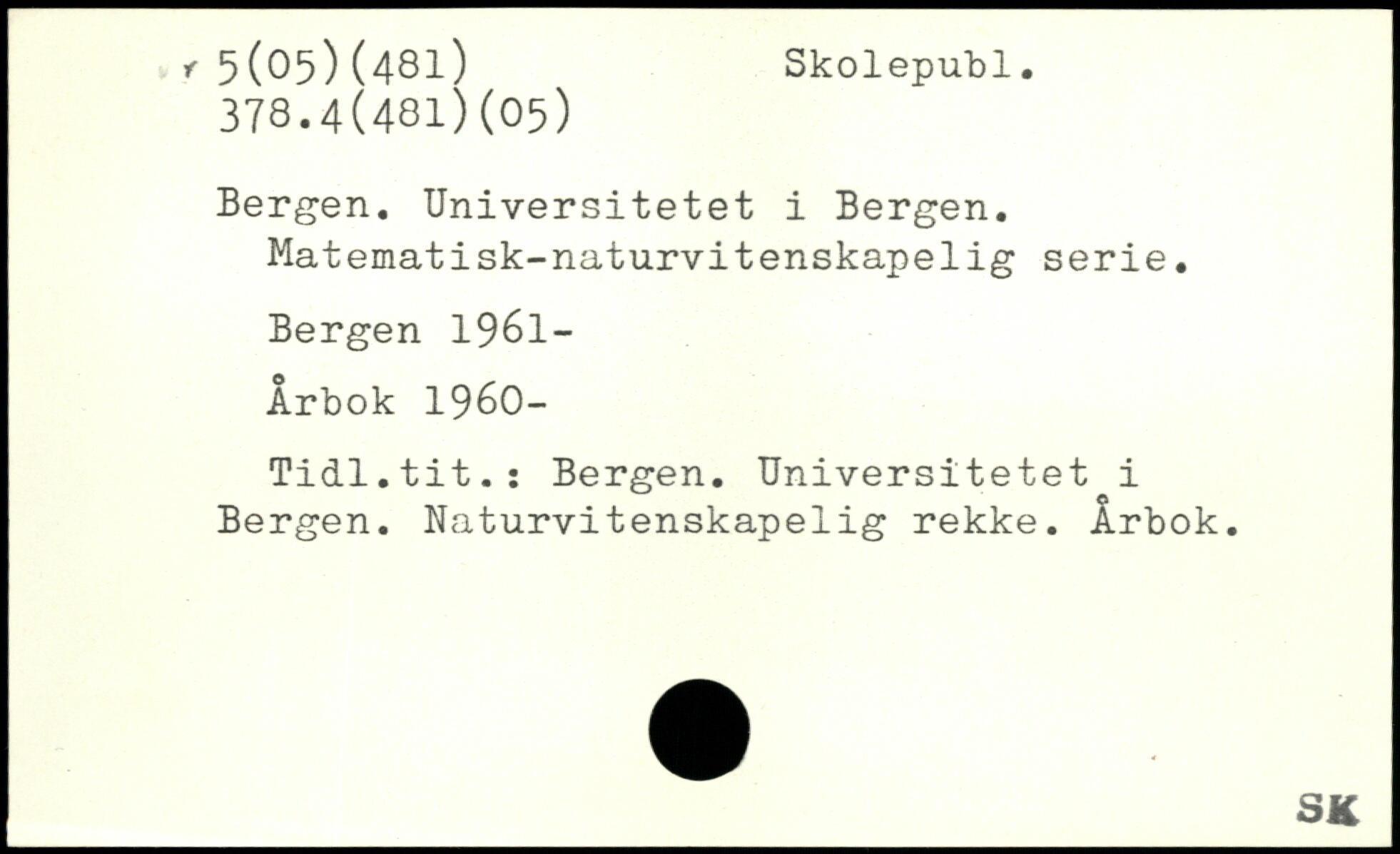 Bergen. Universitetet i Bergen. Matematisk-naturvitenskapelig serie.
