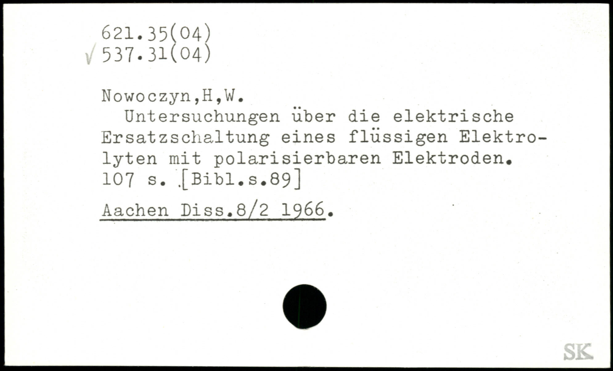 Untersuchungen über die elektrische Ersatzschaltung eines flüssigen Elektrolyten mit polarisierbaren Elektroden.