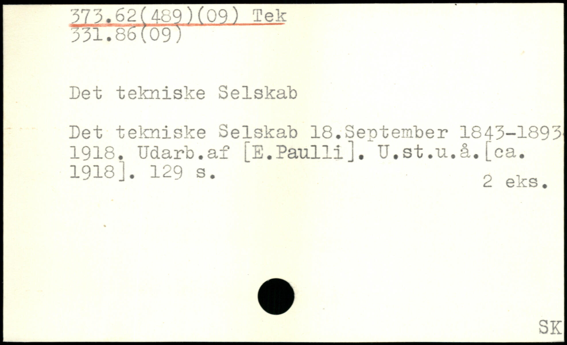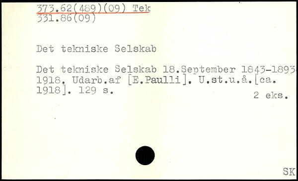 Det tekniske Selskab Det tekniske Selskab 18,September 1843-1893 1918. Udarb.af [E.Paulli]. U.st.u.å.[ea. Mi,- i, .. 2