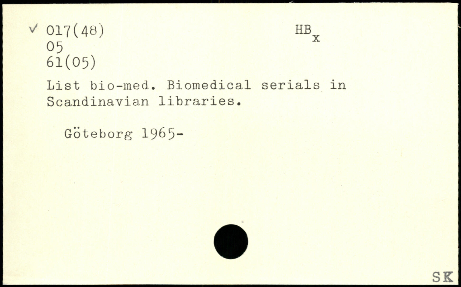 List bio-med. Biomedical serials in Scandinavian libraries. Goteborg 1965-