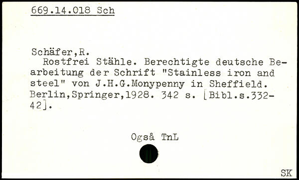 Rostfrei Stähle. Berechtigte deutsche Bearbeitung der Schrift "Stainless iron and steel" von J.H.G.Monypenny in Sheffield.