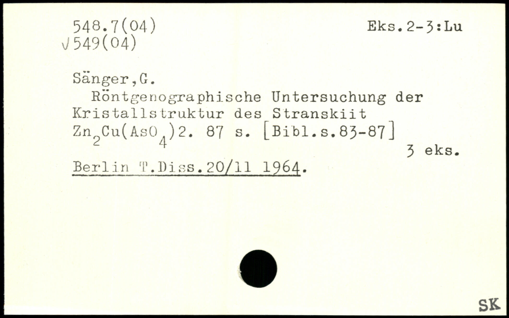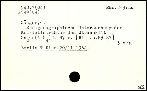 Röntgenographische Untersuchung der Kristallstruktur des Stranskiit Zn Cu(Asö ) 2.