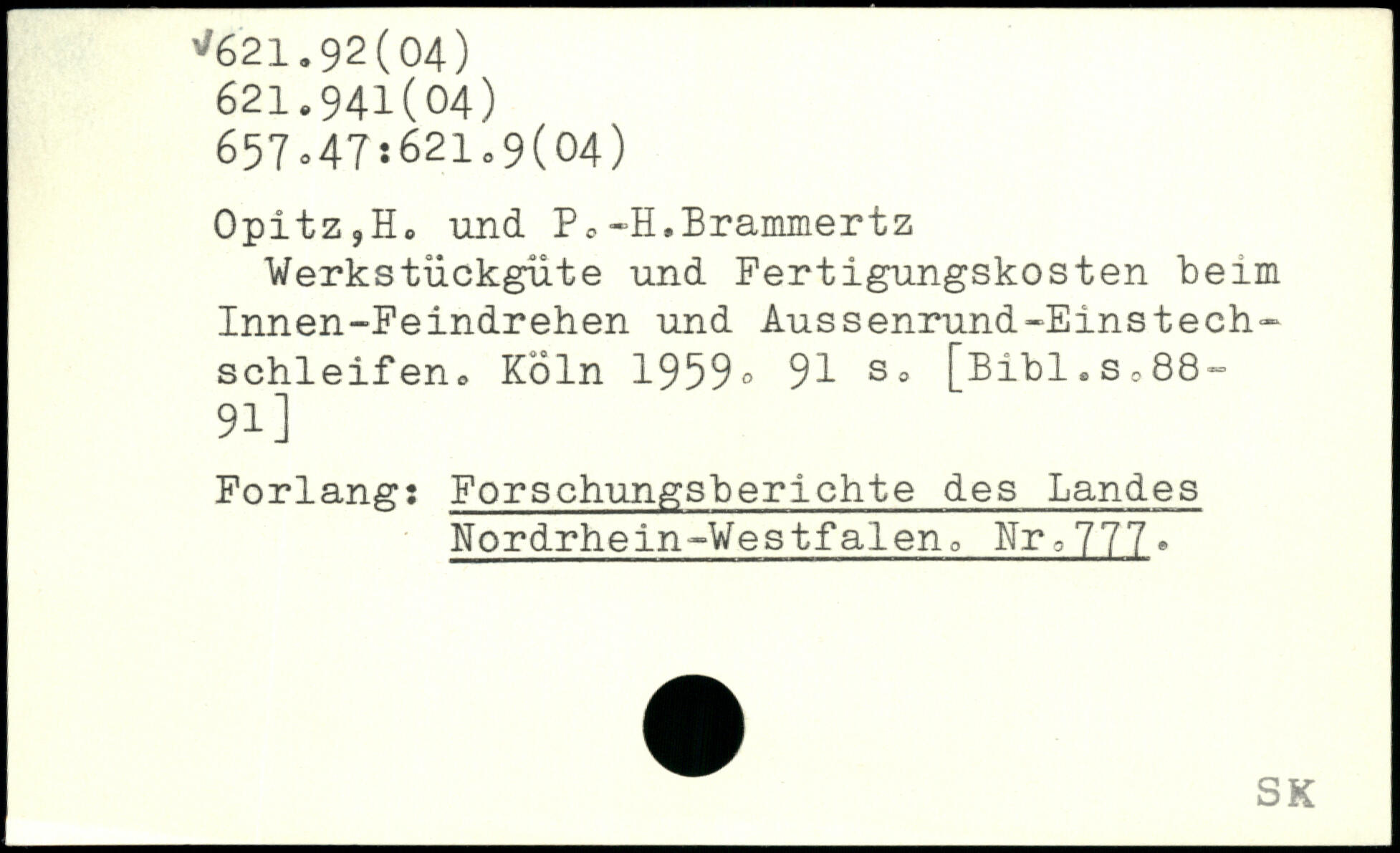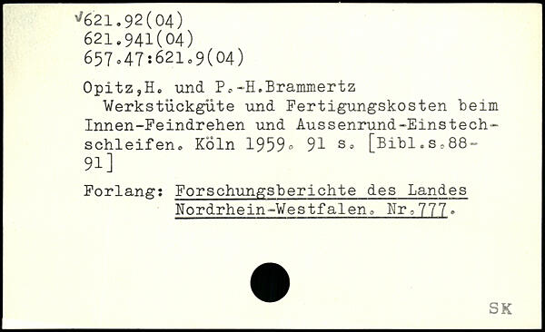 Opitz,Ho und P.-H.Brammertz Werkstückgüte und Fertigungskosten beim Innen-Feindrehen und Aussenrund-Einstech-schleifen.