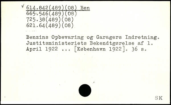 Benzins Opbevaring og Garagers Indretning, Justitsministeriets Bekendtgørelse af L April 1922 ...