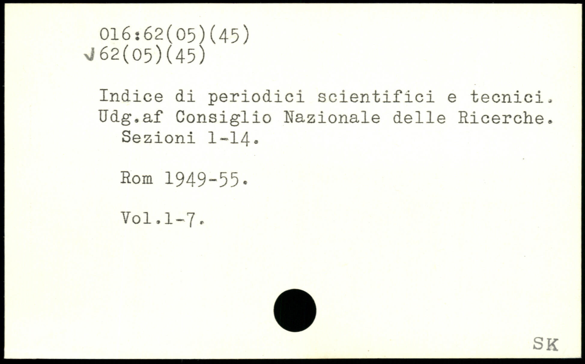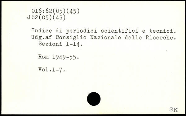 Indice di periodici scientifici e tecnici, Udg.af Consiglio Nazionale delle Ricerche. Sezioni I-I4.