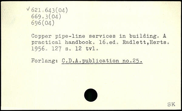 Copper pipe-line services in buildingo A practical handbook, l6oedo