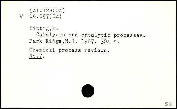 Catalysts and catalytic processes. Park Ridge,N.J. 1967.