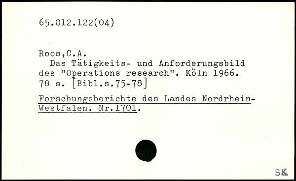 Das Tatigkeits- und Anforderungsbild des ”Operations research”.
