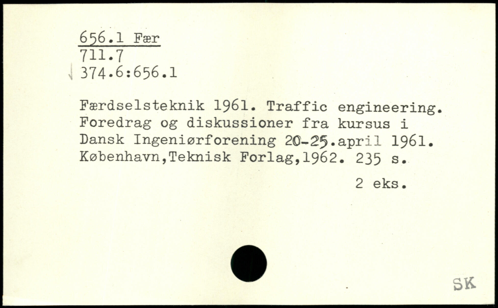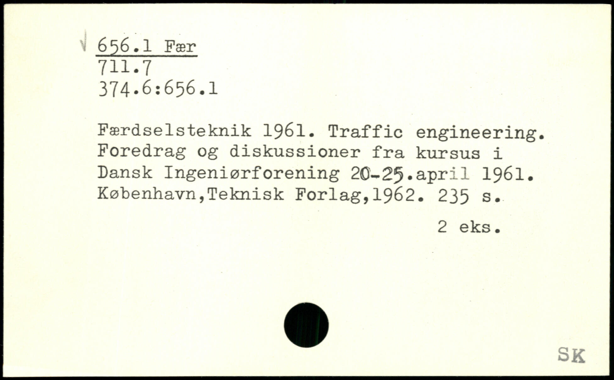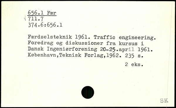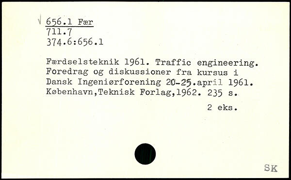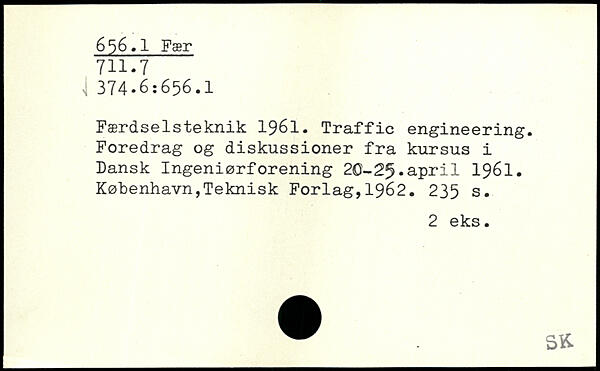 Færdselsteknik 1961. Traffic engineering. Foredrag og diskussioner fra kursus i Dansk Ingeniørforening 20-25.april 1961.