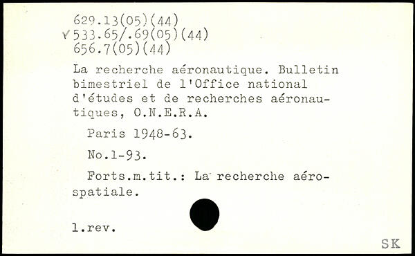 La recherche aéronautique. Bulletin bimestriel de l’Office national d'études et de recherches aéronautiques, O.N.E.R.A.