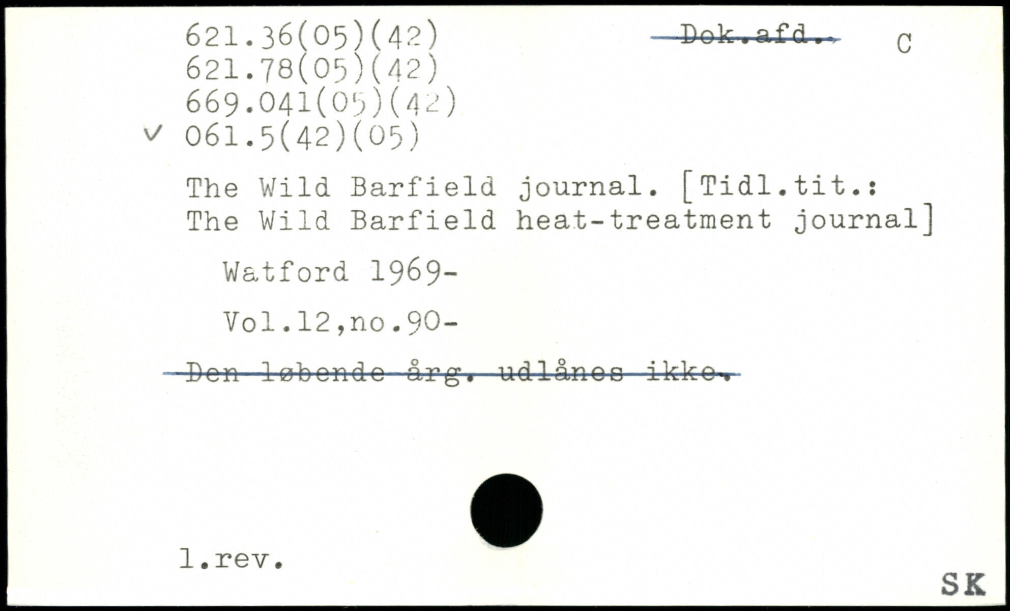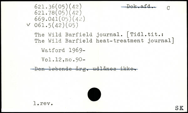 The Wild Barfield journal. [Tidl.tit.: The Wild Barfield heat-treatment journal] Watford 1969-