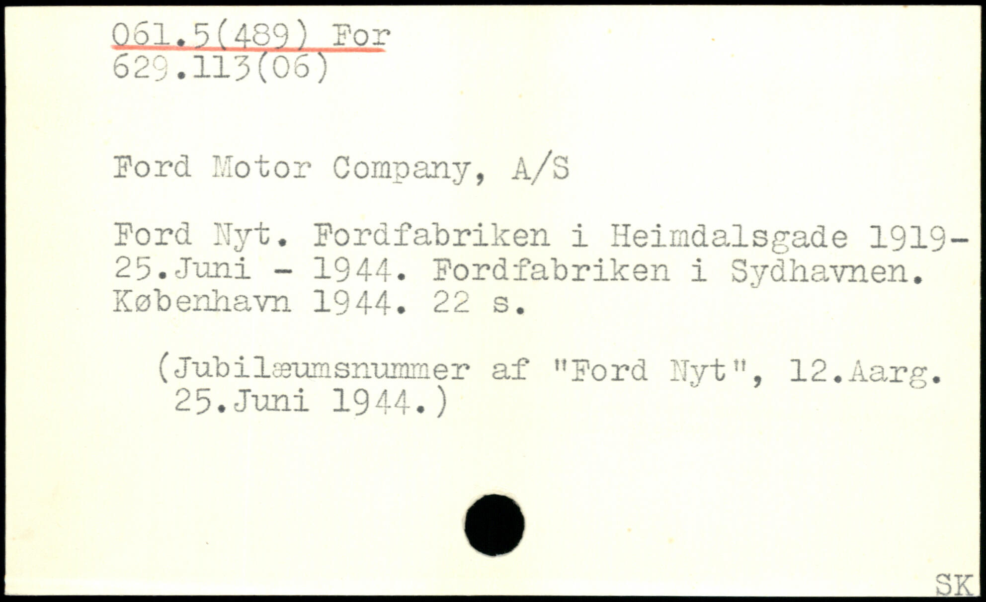 Ford Motor Company, A/S Pord Hyt. Pordfabriken i Heimdalsgade 1919-25. Juni - 1944. Pordfabriken i Sydhavnen.
