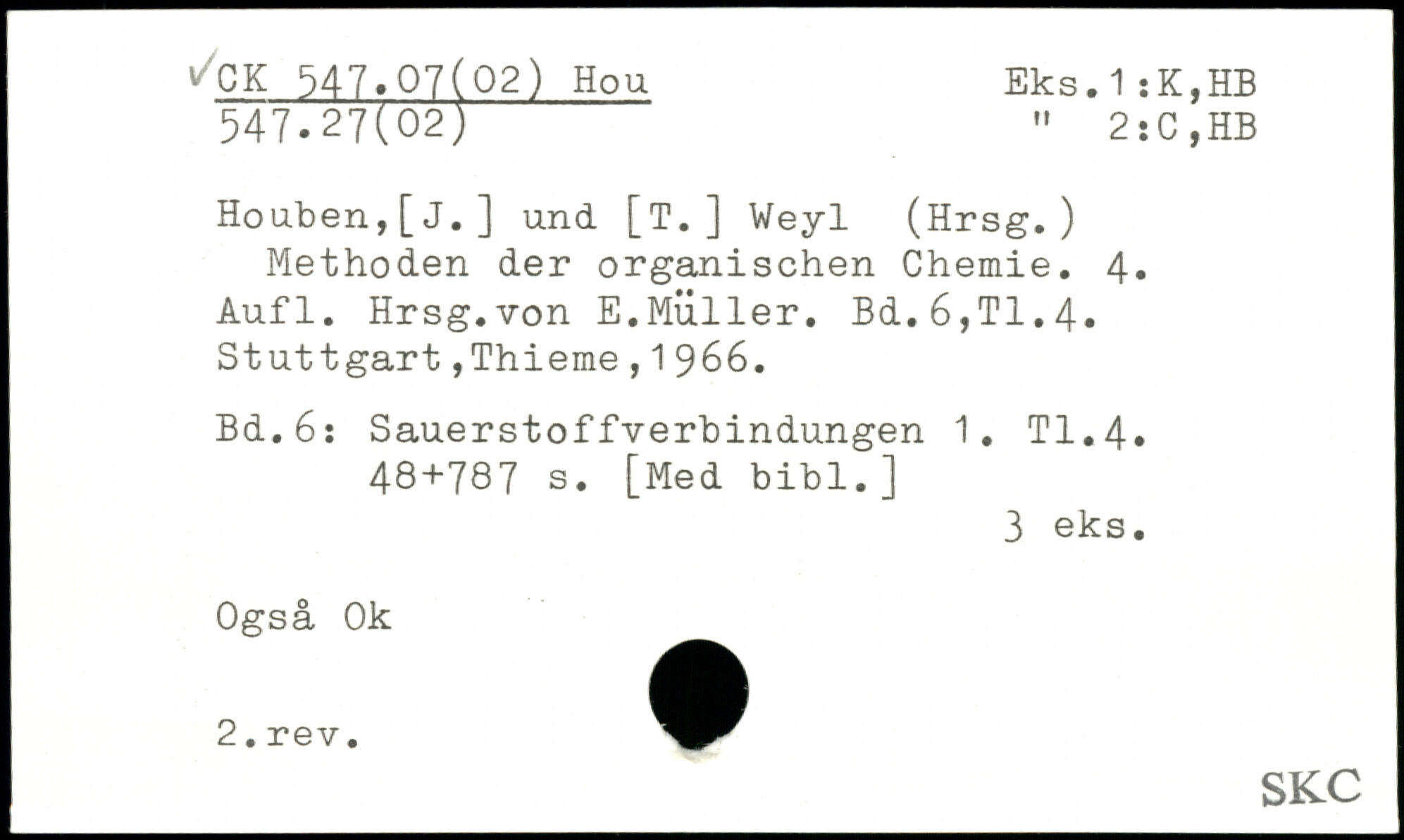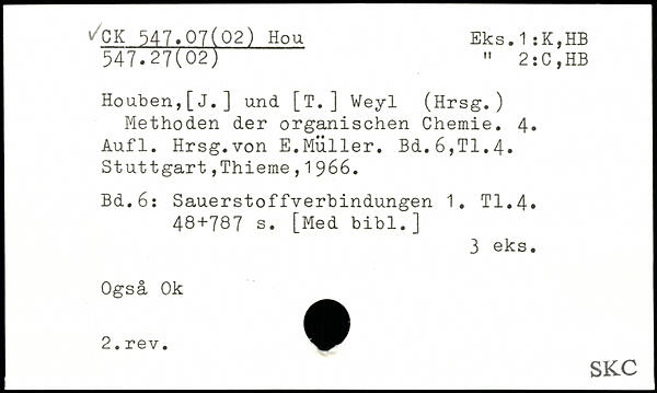 Houben,[J.] und [T.] Weyl (Hrsg.) Methoden der organischen Chemie.