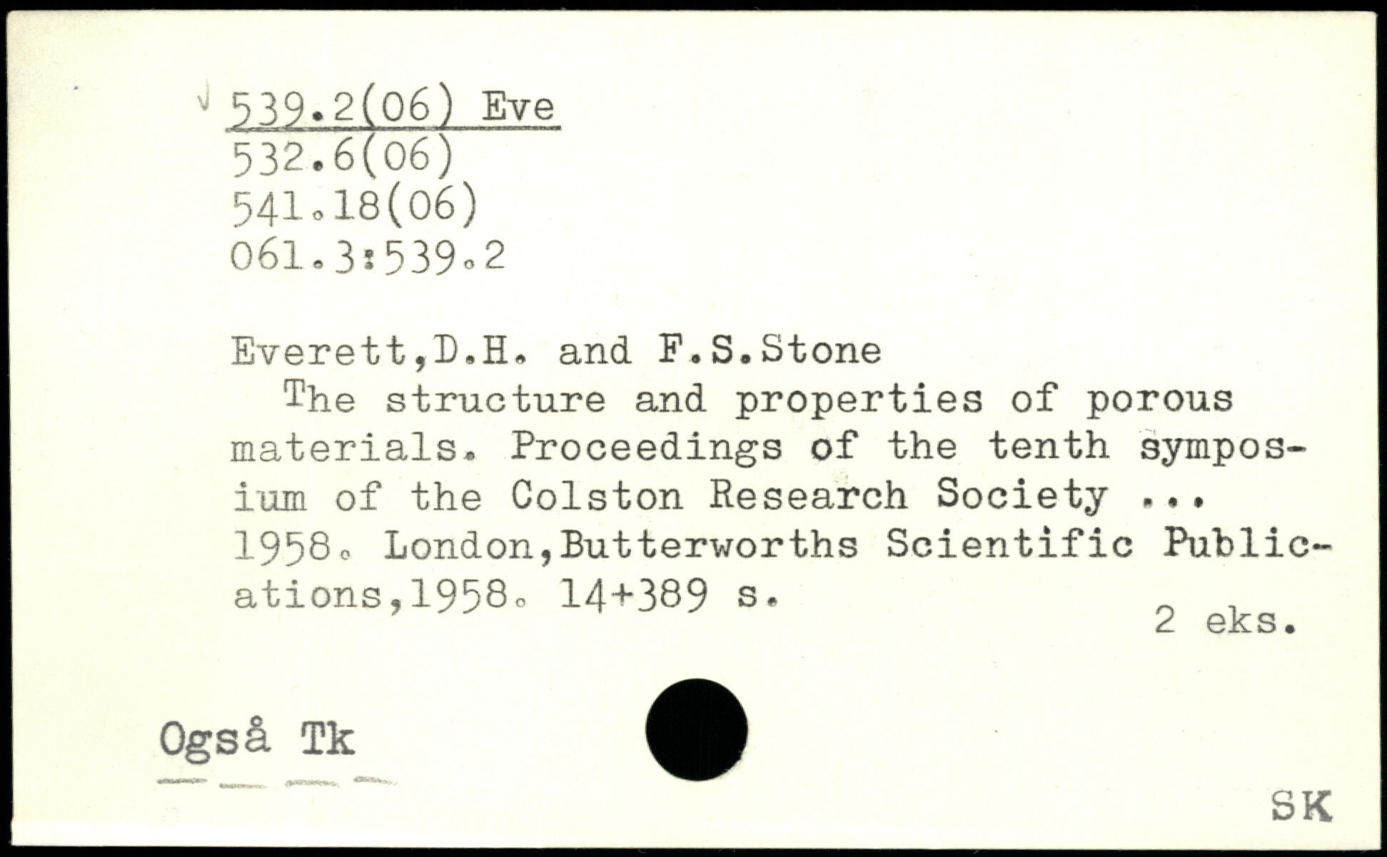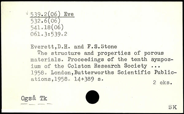 The structure and properties of porous materials. Proceedings of the tenth symposium of the Colston Research Society ... 1958o