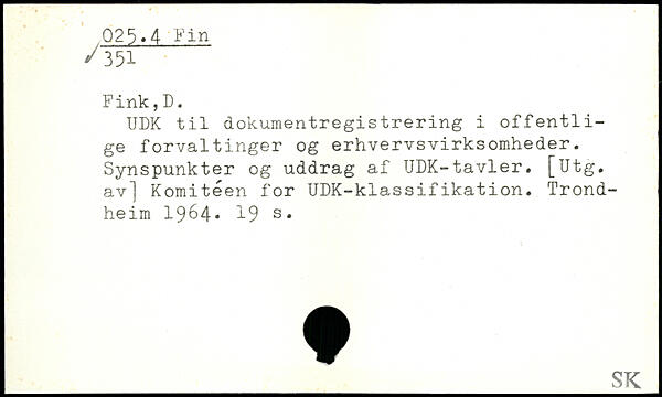 UDK til dokumentregistrering i offentlige forvaltinger og erhvervsvirksomheder. Synspunkter og uddrag af UDK-tavler. [Utg. av] Komitéen for UDK-klassifikation.