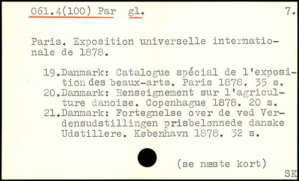 Paris. Exposition universelle internationale de 1878. 19. Danmark: Catalogue spécial de l1exposition des Peaux-arts.
