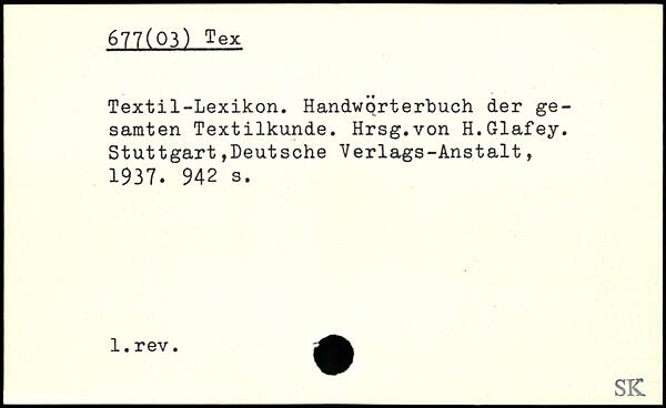 Textil-Lexikon. Handwörterbuch der gesamten Textilkunde. Hrsg.von H.Glafey.