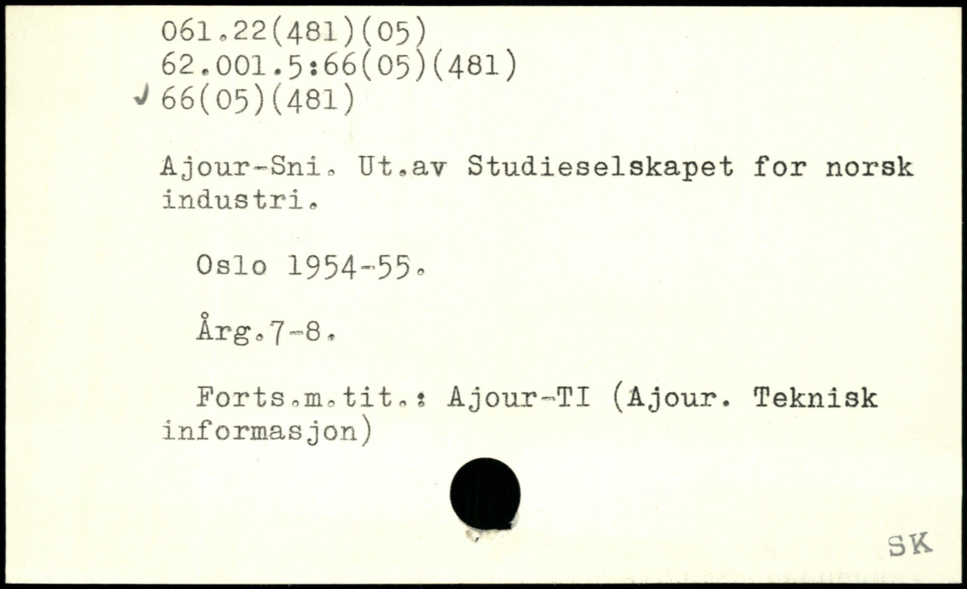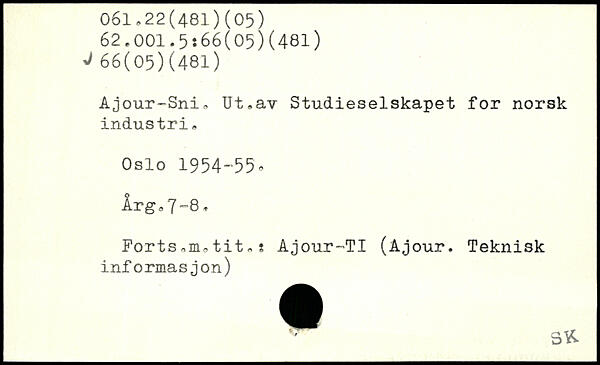 Ajour~Sni, Ut,av Studieselskapet for norsk industri, Oslo 1954-55, ÅrgeJ-8, Forts,nutit,s Ajour-TI (Ajour. Teknisk informasjon)