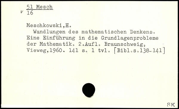 Wandlungen des mathematischen Denkens. Eine Einführung in die Grundlagenprobleme der Mathematik,, 2,Auflo Braunschweig9 Vieweg,1960-