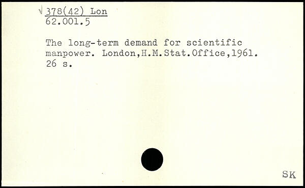 The long-term demand for scientific manpower. London,H.M.Stat.Office,1961.