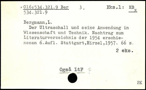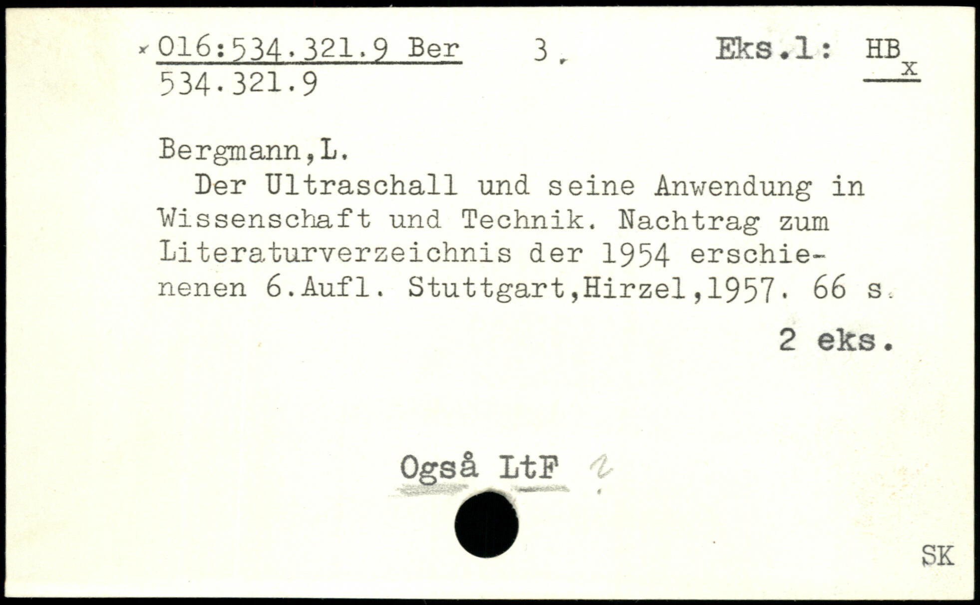 Der Ultraschall und seine Anwendung in Wissenschaft und Technik. Nachtrag zum Literaturverzeichnis der 1954 erschienenen