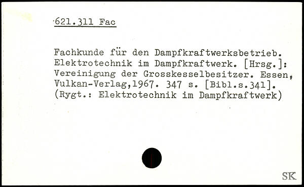 Fachkunde für den Dampfkraftwerksbetrieb. Elektrotechnik im Dampfkraftwerk. [Hrsg.]; Vereinigung der Grosskesselbesitzer.