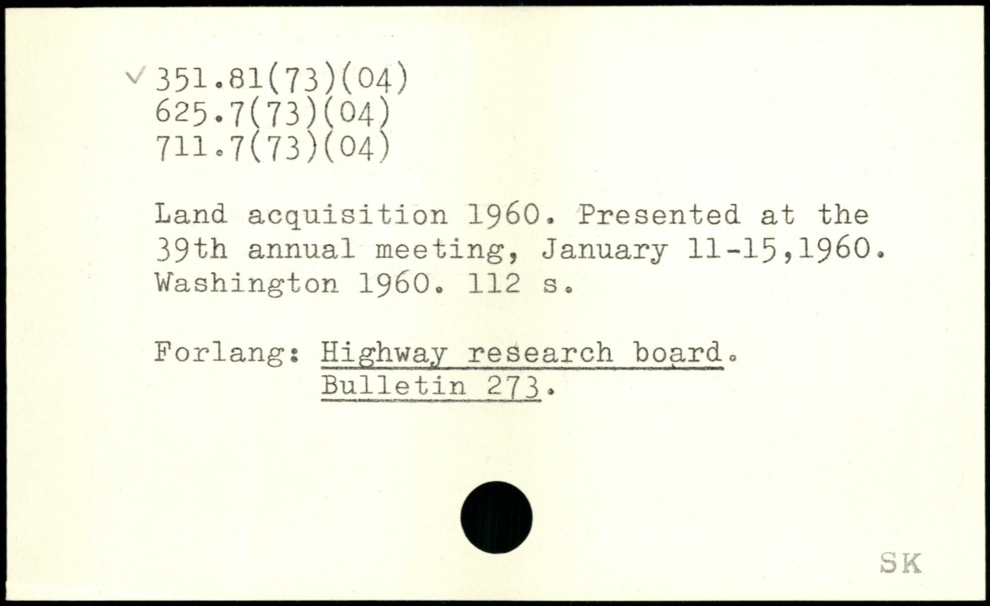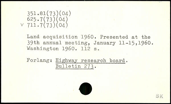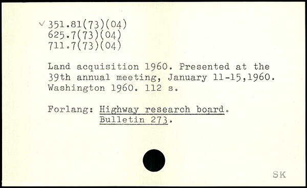 Land, acquisition 1960. Presented at the 39th annual meeting, January 11-15?1960.