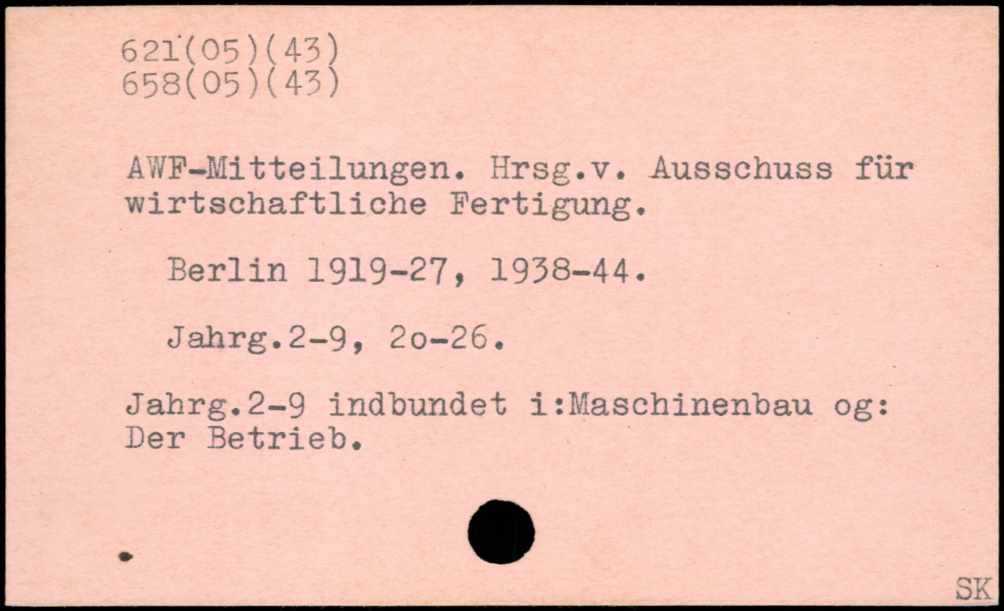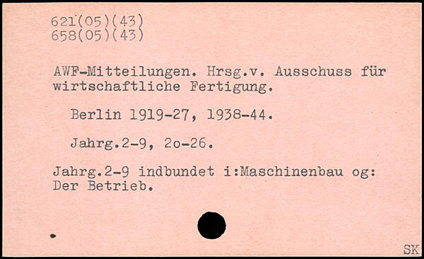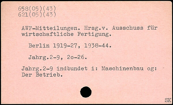 AWF-Mitteilungen. Hrsg.v. Ausschuss für wirtschaftliche Fertigung.