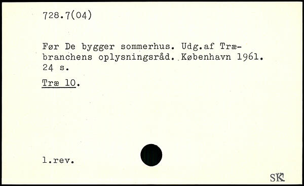 Før De bygger sommerhus. Udg.af Træbranchens oplysningsråd.