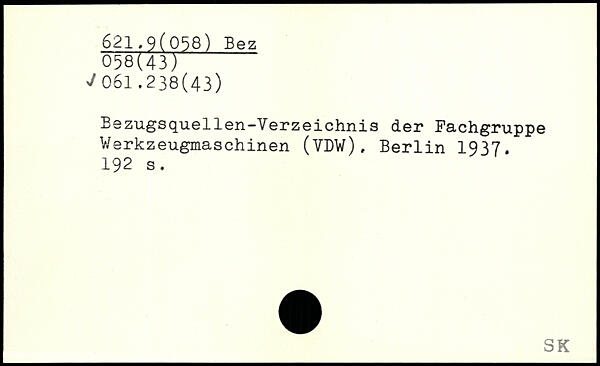Eezugsquellen-Verzeiehnis der Fachgruppe Werkzeugmaschinen (VDW)