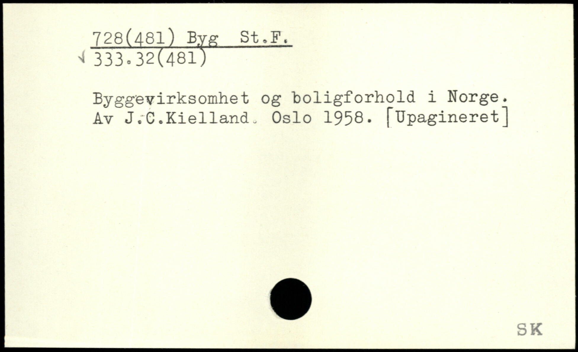 Byggevirksomhet og boligforhold i Norge. Av J.C.Kielland. Oslo 1958. [Upagineret]