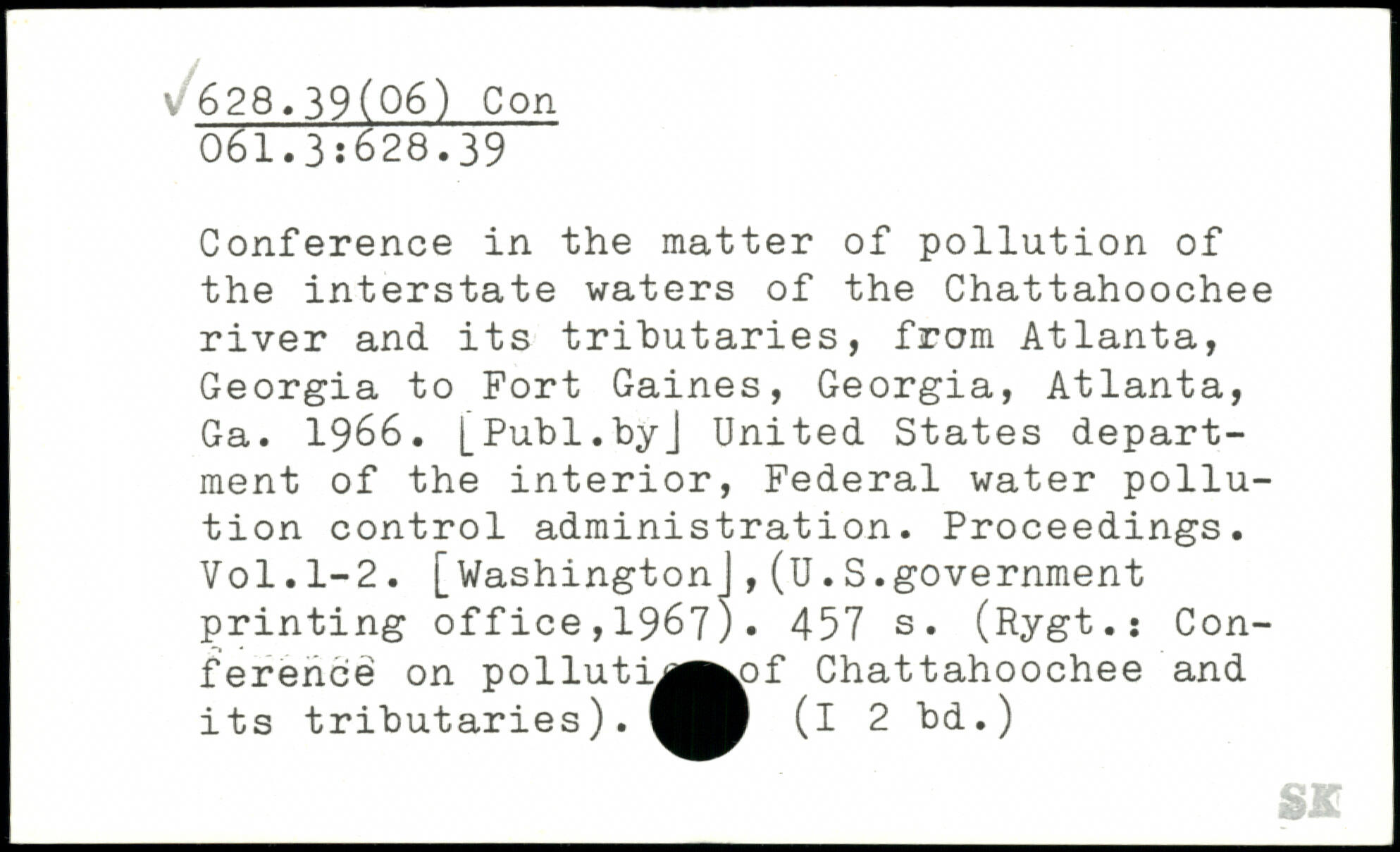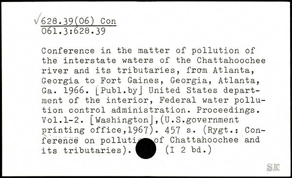 Conference in the matter of pollution of the interstate waters of the Chattahoochee river and its tributaries, from Atlanta, Georgia to Fort Gaines, Georgia, Atlanta, Ga. 1966.