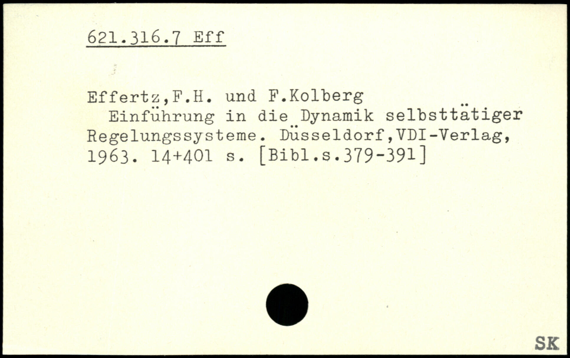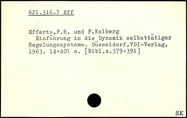 Einführung in die Dynamik selbsttätiger Regelungssysteme.