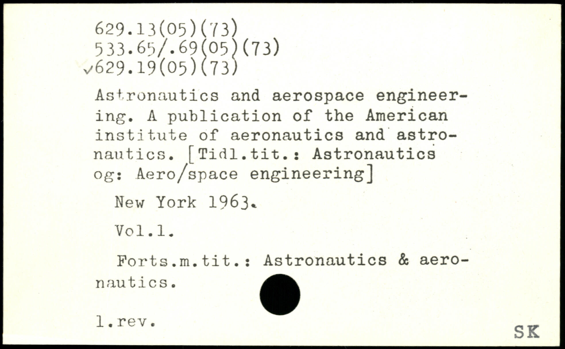 Astronautics and aerospace engineering. A publication of the American institute of aeronautics and astronautics. [Tidl.tit.s Astronautics og: Aero/space engineering]